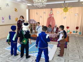Праздник Наурыз, означающий «Новый день» - это прекрасный праздник обновления природы, весны, олицетворения любви, дружбы, плодородия. В этот праздник все непременно должны помириться, даже войны прекращались на время празднования Наурыза. Радость, веселье, мир царят в этот день, люди счастливы, что пережили зиму. В нашем детском саду прошли праздники весеннего равноденствия «Наурыз». Здесь у нас с самых малых лет детей знакомят с народными обычаями и традициями, воспитывают уважение к ним и любовь к природе.