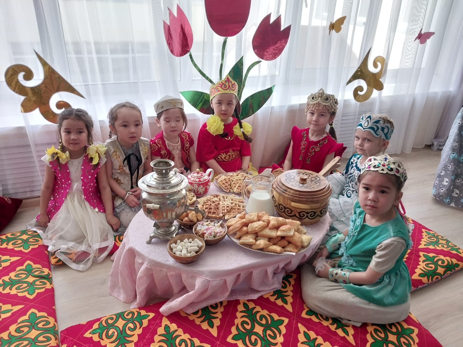 Дети приготовили к празднику песни и танцы. Своим выступлением на утреннике они показали культуру и гостеприимство нашего народа. Веселый, весенний праздник продолжился за праздничным дастарханом.