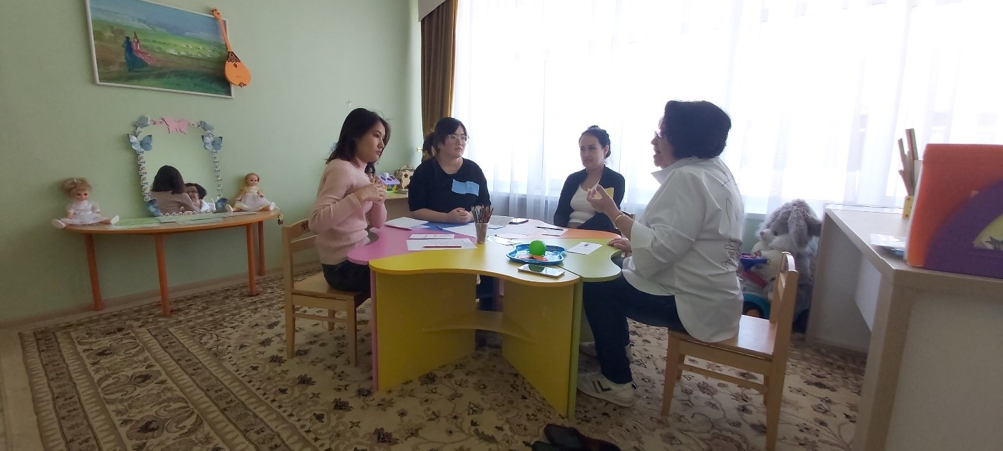 11.04.2023ж. 2023 жылдың 11 сәуірінде бөбекжай психологы Кабанова Г.К. жас мамандармен психологиялық тренинг өткізді. Бұл іс-шараның мақсаты – педагогтің психологиялық денсаулығын нығайту үшін, эмоционалды күйзелісті жою. Оқу барысында жас мамандар кәсіби ой-өрісін кеңейтіп, құнды тәжірибелер жинақтады.