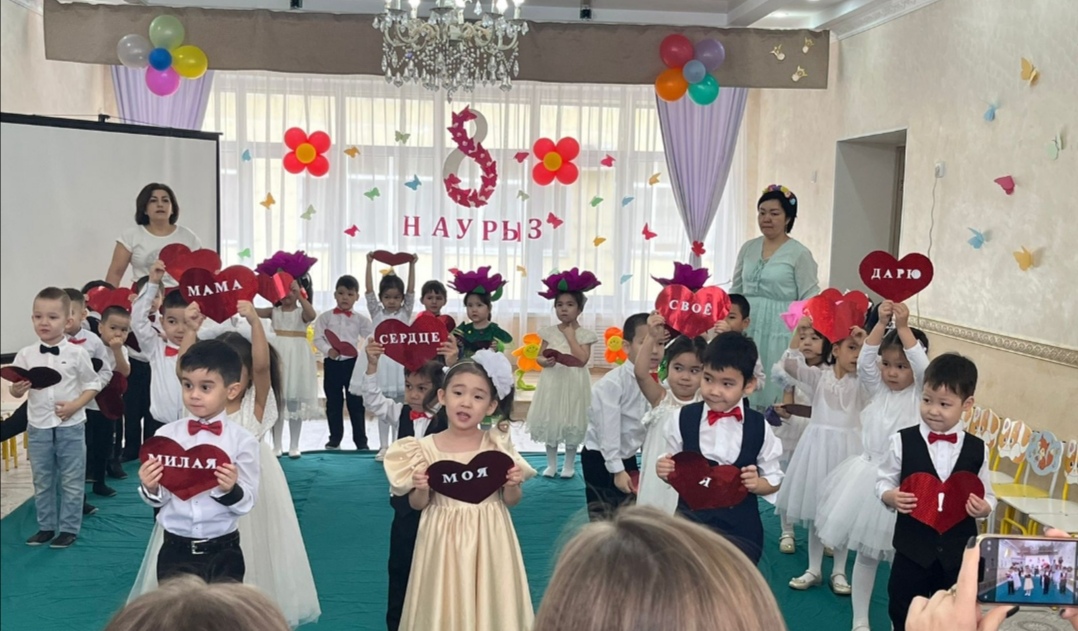 Балалар мерекеге ән мен би дайындады, ұлттық ойындар ойнады. Олар ертеңгілікте өз өнерлерімен халқымыздың мәдениетін, қонақжайлығын көрсетті. Көңілді, көктем мерекесінде мерекелік дастархан жайылып, балалар бір -біріне тілектер айтты.