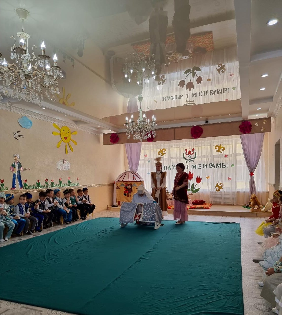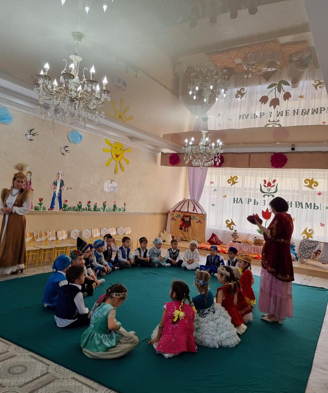 Дети приготовили к празднику песни и танцы. Своим выступлением на утреннике они показали культуру и гостеприимство нашего народа. Веселый, весенний праздник продолжился за праздничным дастарханом.